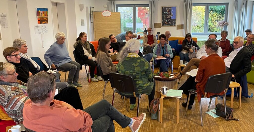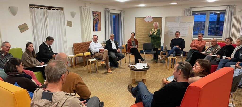 Rund 25 interessierte BesucherInnen, Amaryllis-Mitbewohnende und unsere vier geladenen Gäste – vertreten waren die Katringer Grünzeug eG, die GLS-Bank, die Zusammenstehen eG sowie die BürgerEnergie Rhein-Sieg eG – nahmen die genossenschaftliche Form als Gefäß für Talente-Entfaltung und Zukunftsgestaltung an diesem gelungenen Nachmittag wichtig.